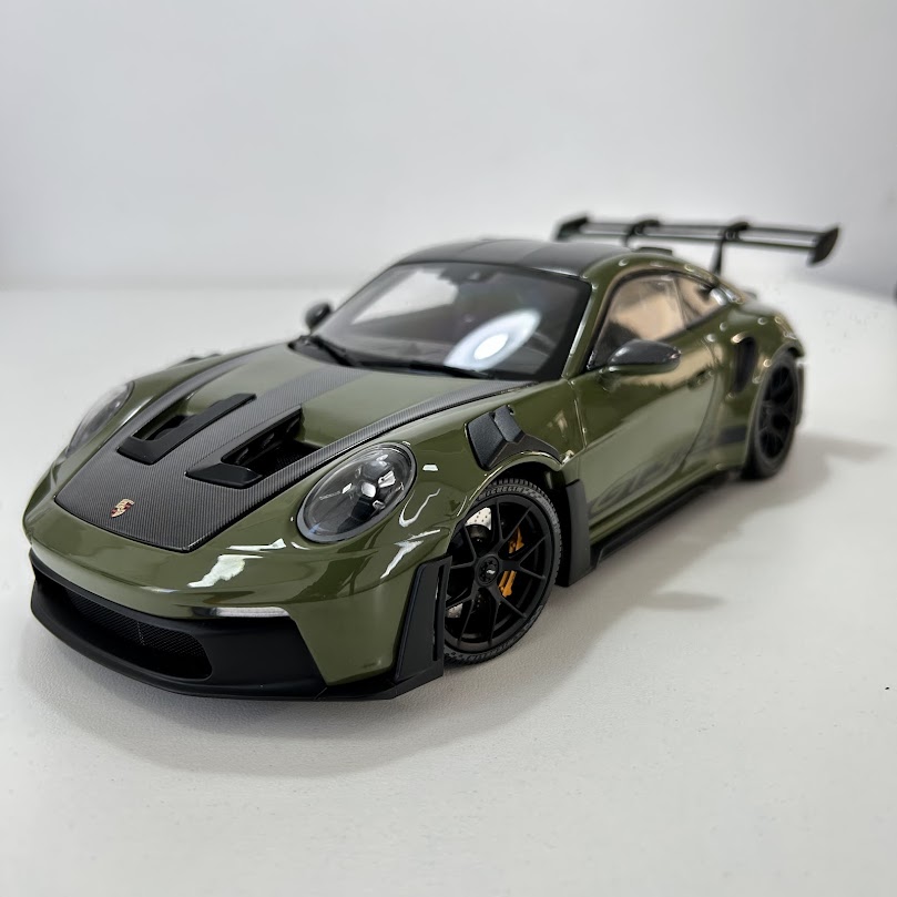 A perfeição em forma de miniatura. Esta é a Porsche 911 GT3 RS 2024 na escala 1:18, produzida pela consagrada marca Minichamps, referência mundial em modelos de alto padrão. Um verdadeiro item de colecionador, que une precisão, acabamento premium e presença marcante.